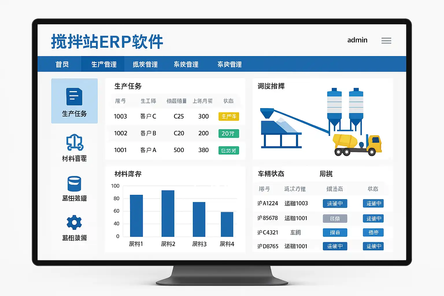 搅拌站ERP软件通过集成生产计划、库存管理和设备维护,实现流程自动化,从而显著提升生产效率。关键功能包括: