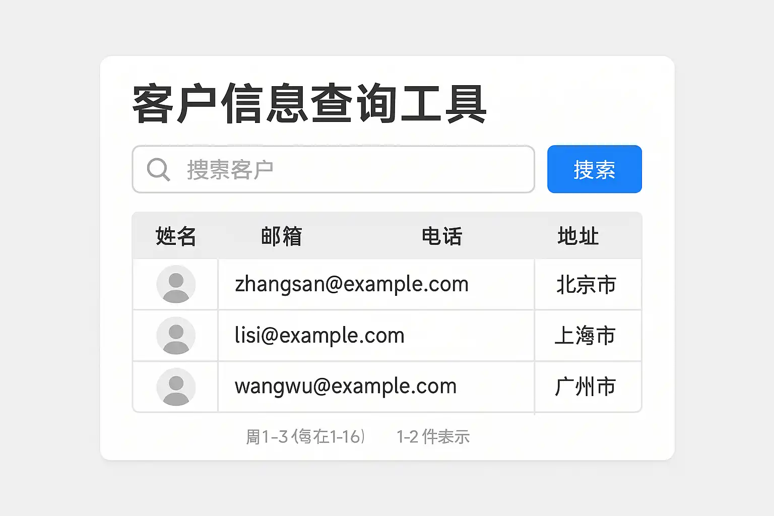| 关键词过滤 | 精准匹配客户输入关键词,减少噪声 | 根据客户输入“张三”,只返回含“张三”的记录 |