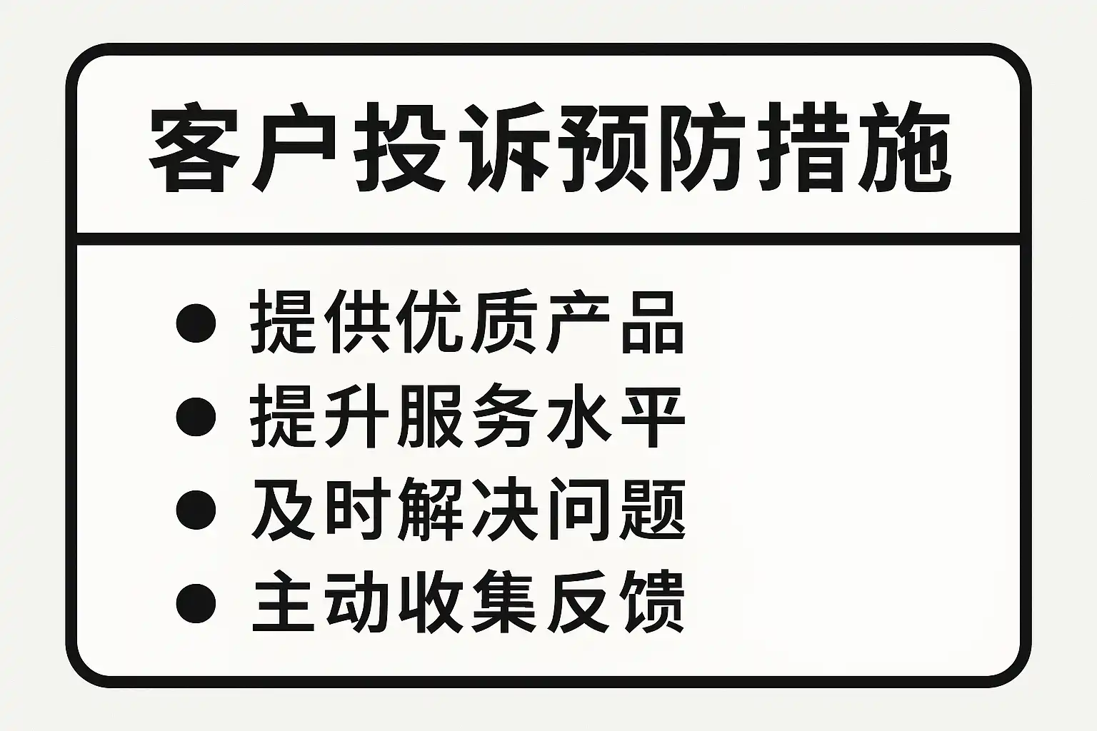 预防客户投诉,企业需从管理、流程、人员及技术等多维度着手。以下为核心措施列表: