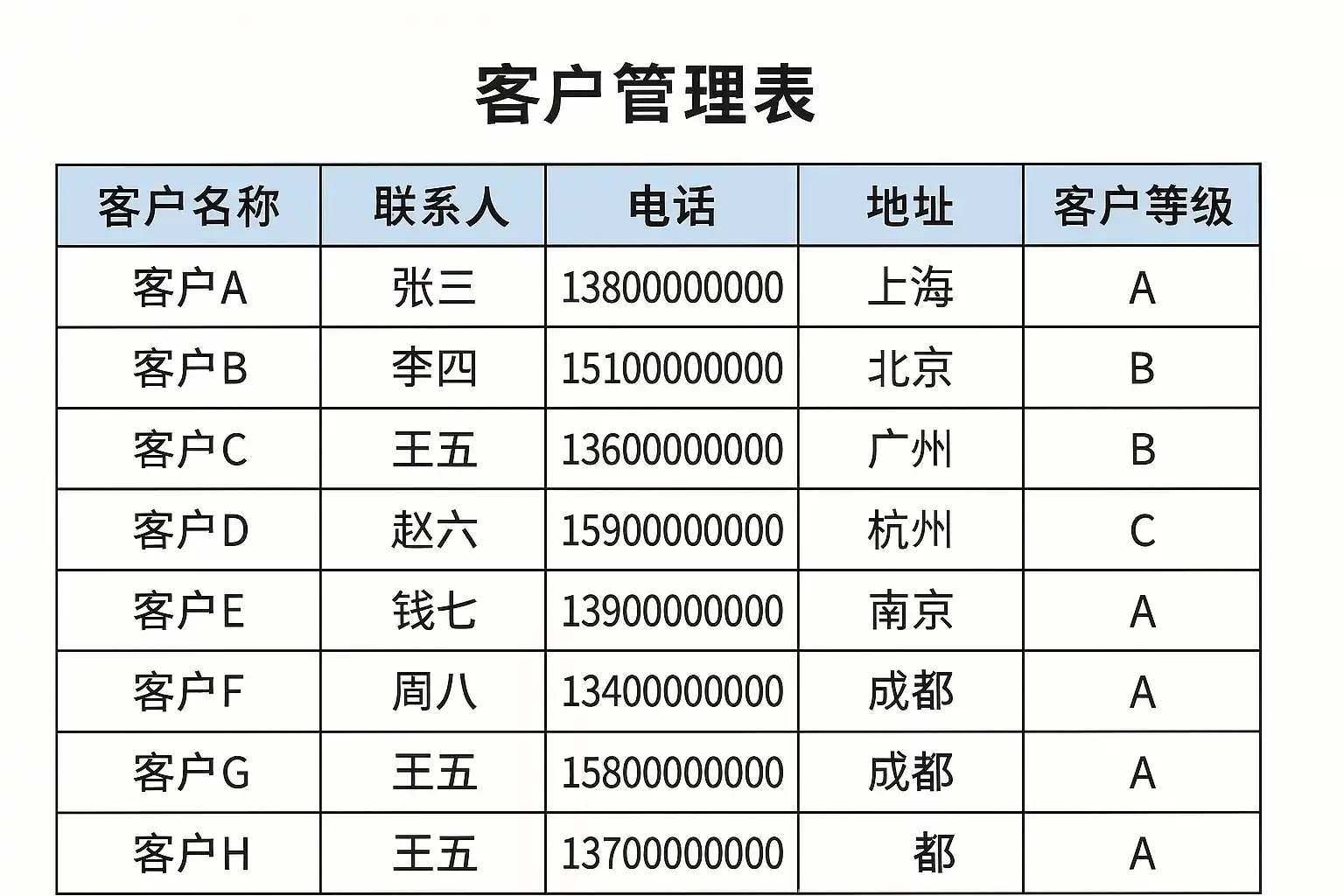 | 1、信息字段标准化 | 建立统一的信息录入模板,包含姓名、联系方式、客户类别等必要字段 | 避免信息遗漏,方便检索 |