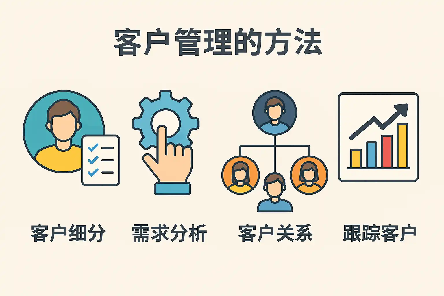 客户管理方法多样,但要系统化、专业化地提升客户体验,常用方法大致可归纳为以下几类: