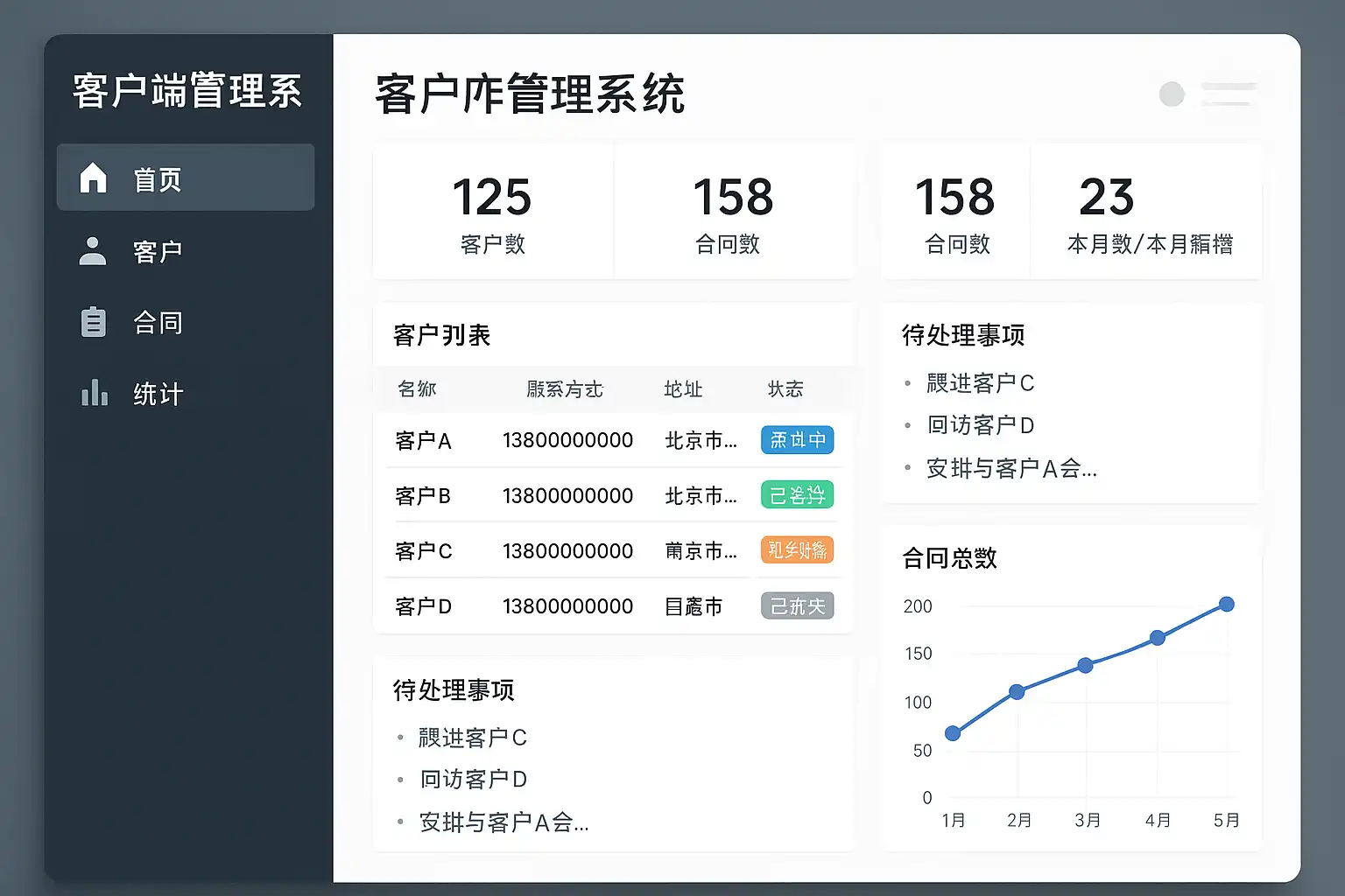 - 数据集中管理:客户数据、销售数据与服务数据统一存储,形成完整的客户视图。