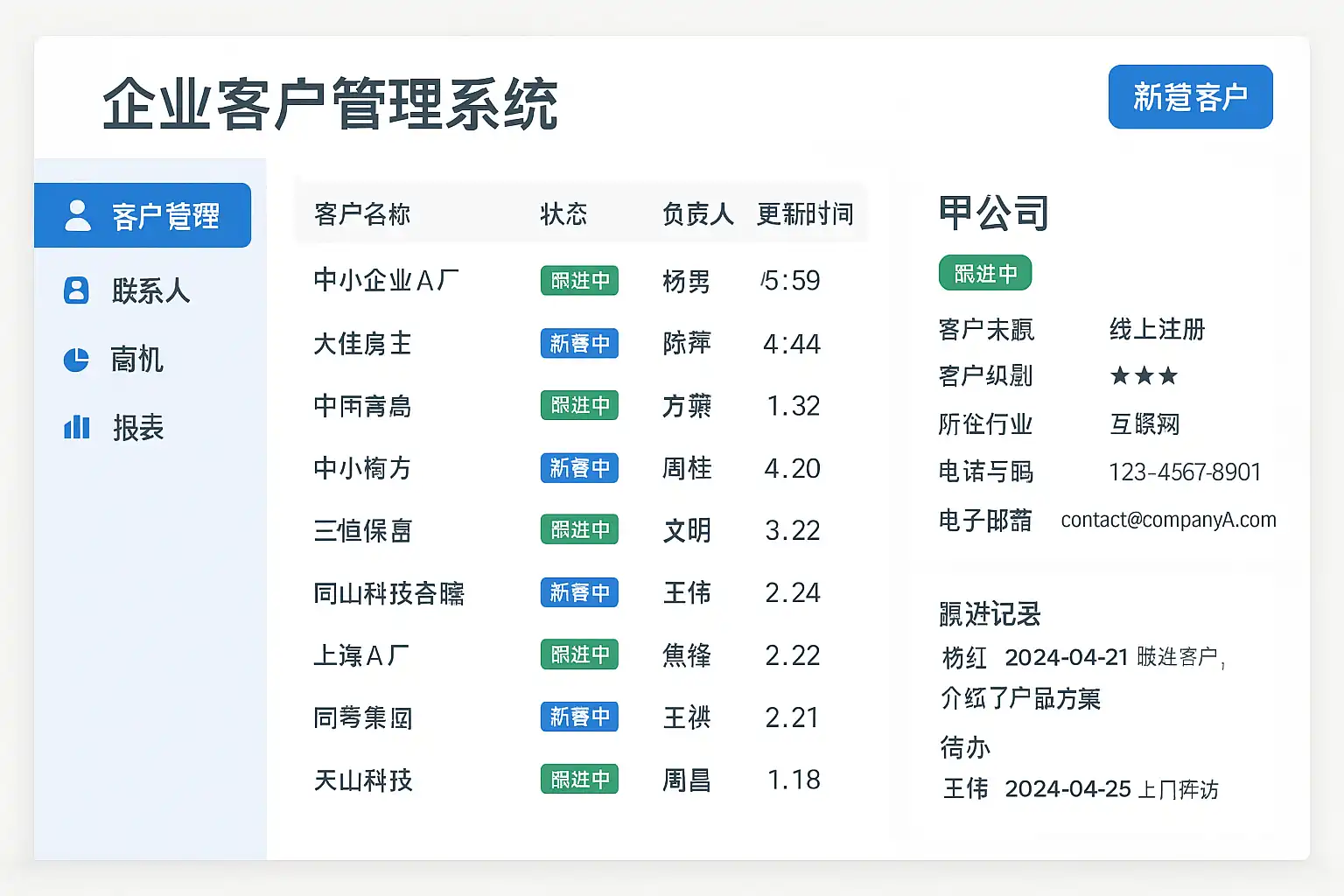 | 数据采集 | 统一客户入口(官网、表单、销售线索自动抓取),杜绝信息遗漏。 |