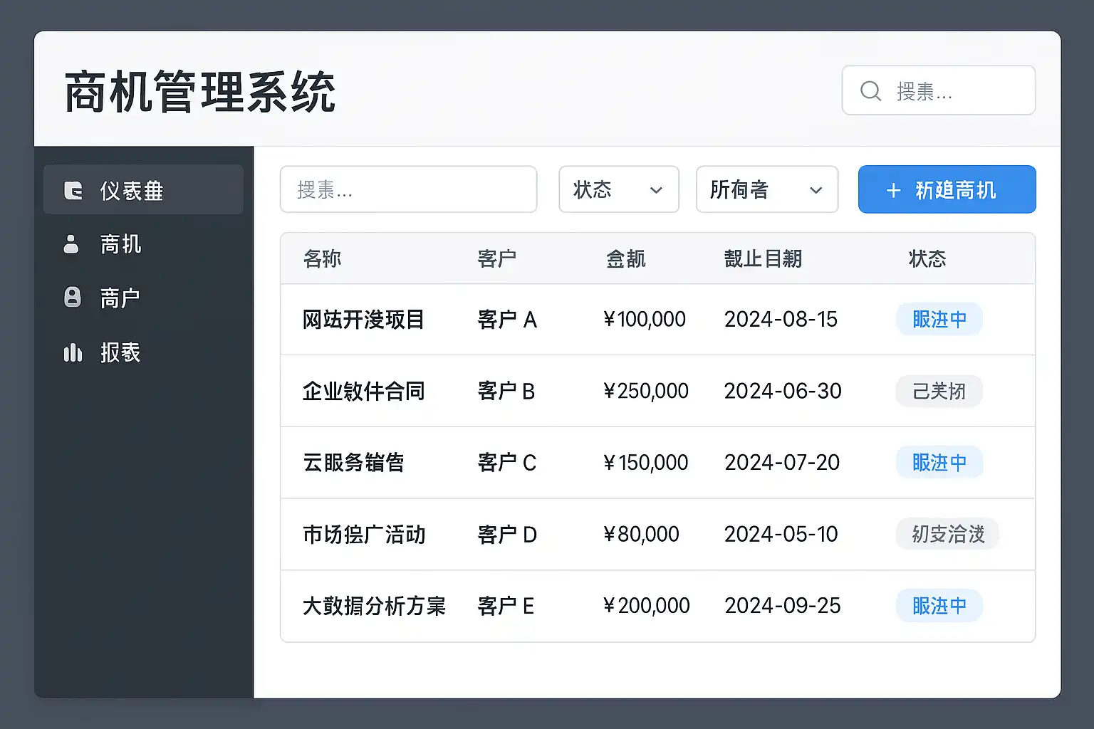 | 数据分析 | 实时数据看板、业绩统计、漏斗分析 | 管理层精准决策,有效激励团队 |