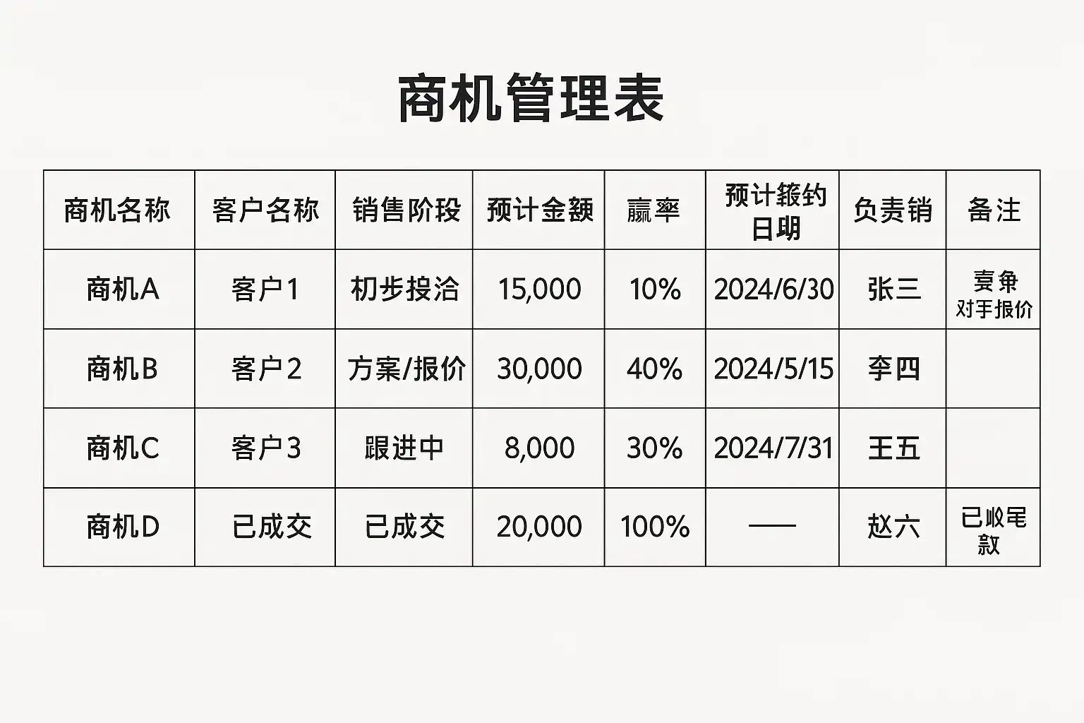 《商机管理表内容详解,如何提升销售效率?》