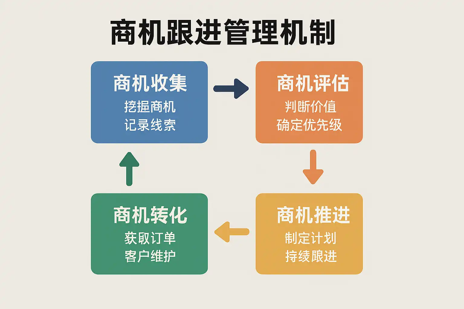 建立完整的商机跟进管理机制,需重点关注以下关键环节: