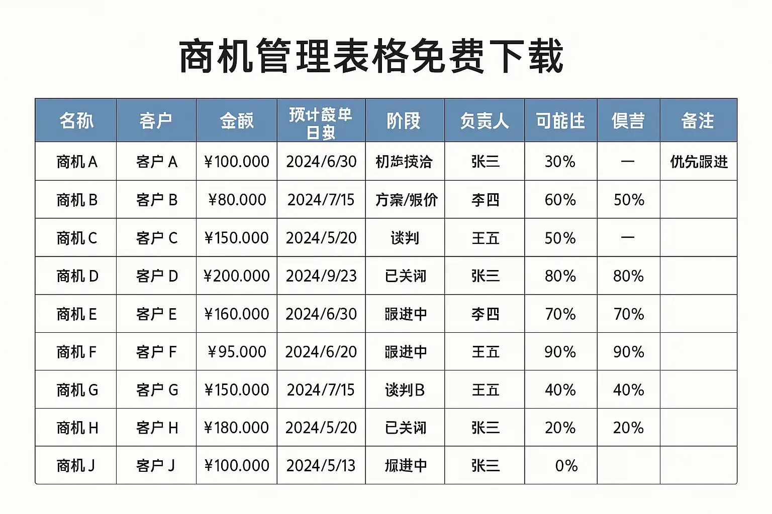 商机管理表格免费下载,如何高效提升销售业绩?