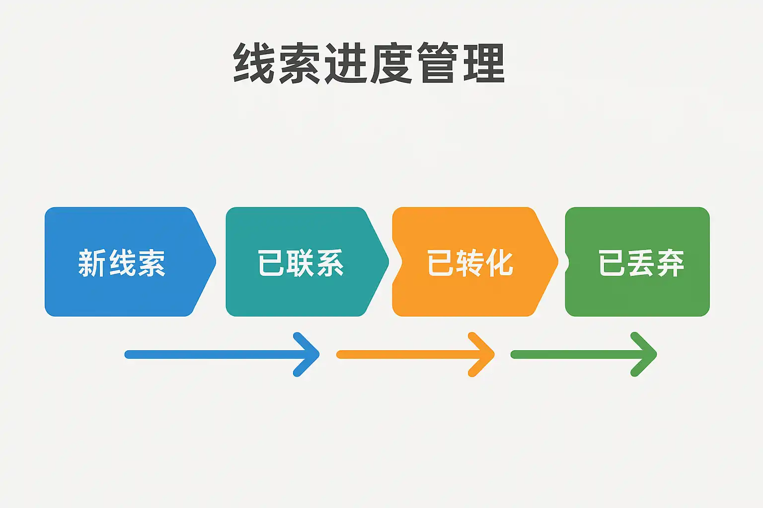 | 进度可视化 | 直观展示每条线索所处阶段 | 团队例会、主管复盘 |
