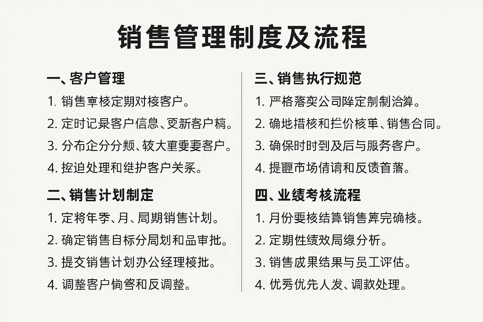 | 制度完善 | 补充或修订销售管理相关制度 | 保障流程落地与执行力 |