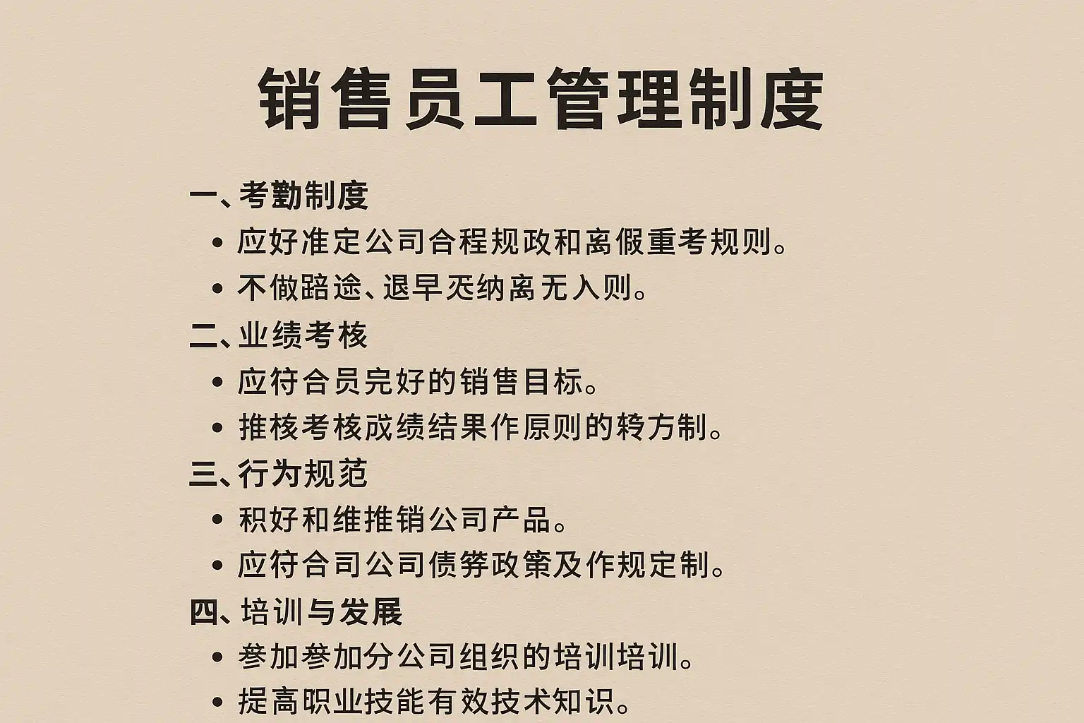 销售员工管理制度是保障企业销售团队高效运作、提升整体业绩的基石。要建立科学、有效的销售管理制度,需从以下几个核心方面入手: