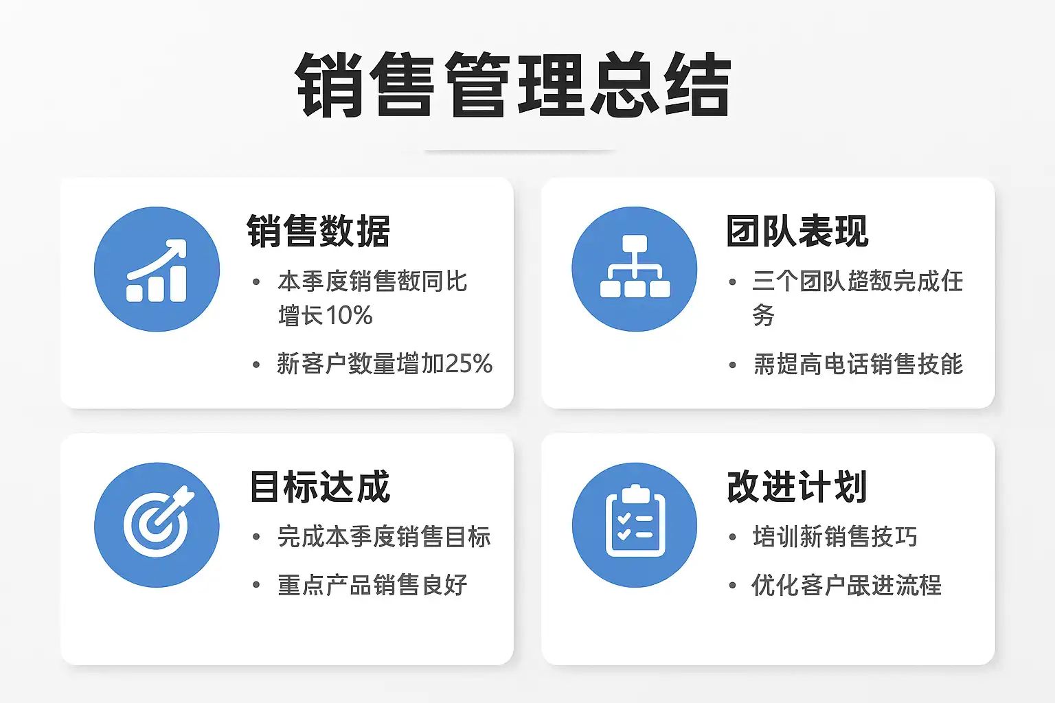 - 目标导向奖励:根据销售管理总结设定明确的奖励目标,如季度销售额增长10%。