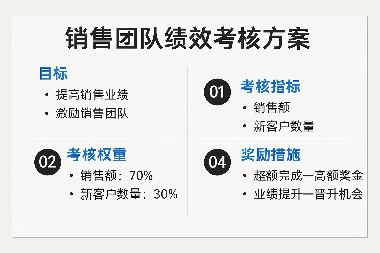 要有效提升销售团队业绩,绩效考核方案应结合目标设定、反馈机制和激励措施: