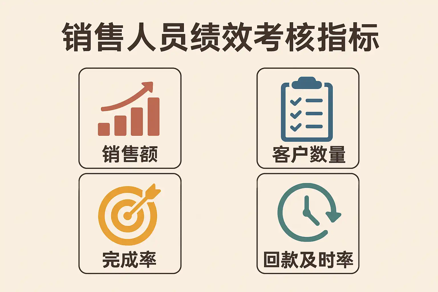 | 销售结果性 | 销售额、订单数量、回款率 | 直接衡量销售贡献 |