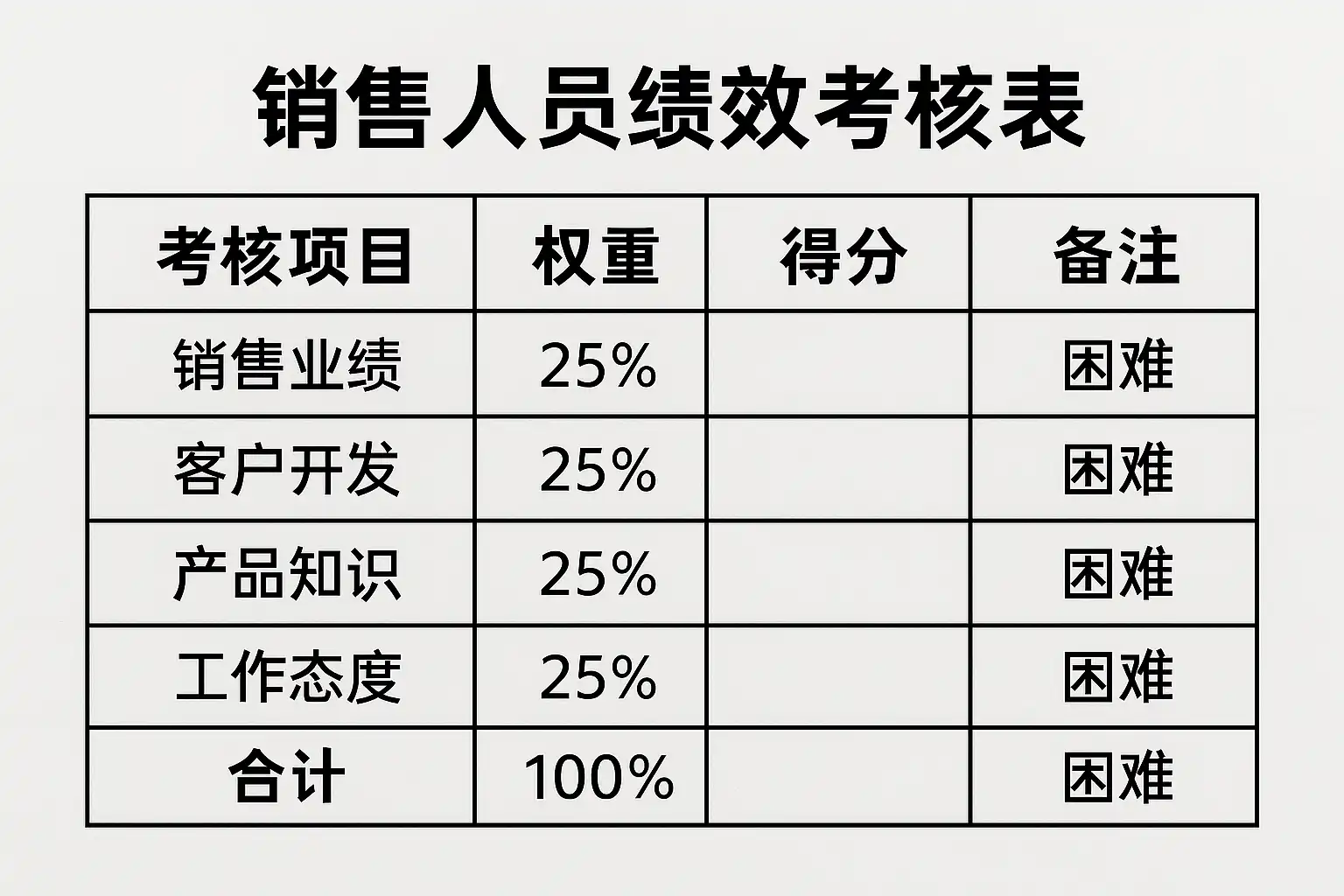 《销售人员绩效考核表难点解析,如何有效解决?》