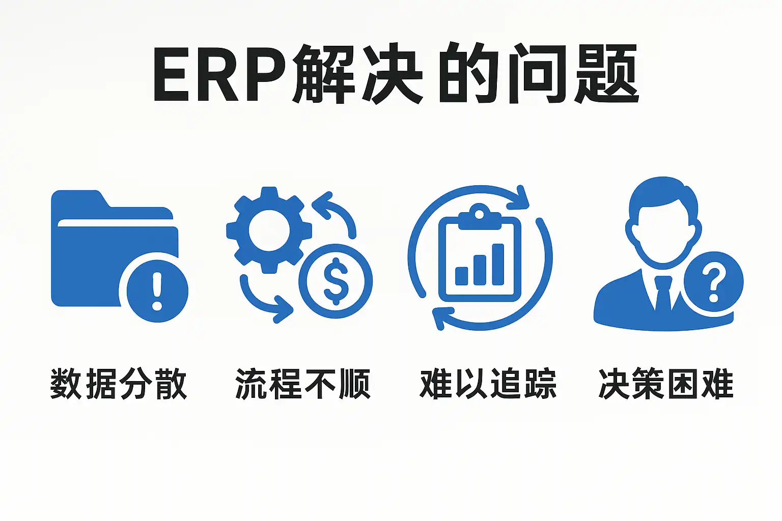 ERP系统之所以成为企业必备,是因为它能针对企业普遍存在的各类管理难点给予系统性解决。以下是ERP主要解决的核心问题及其详细说明: