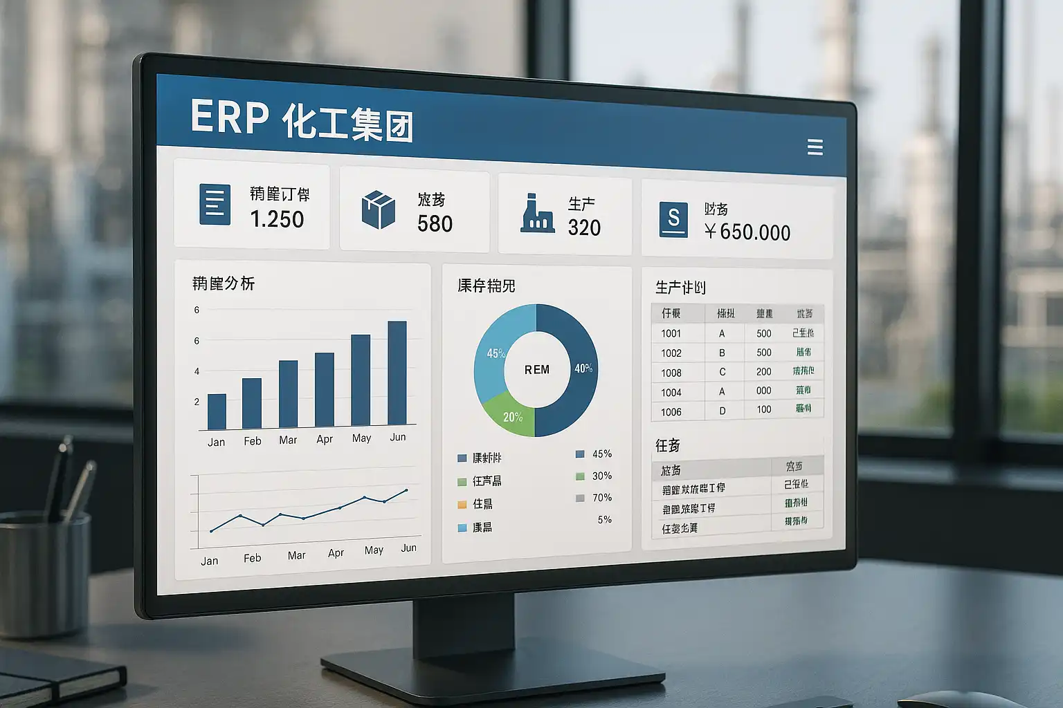 - 按需定制业务模块:根据化工集团实际业务流程,自定义采购、生产、质检、物流、财务等模块。