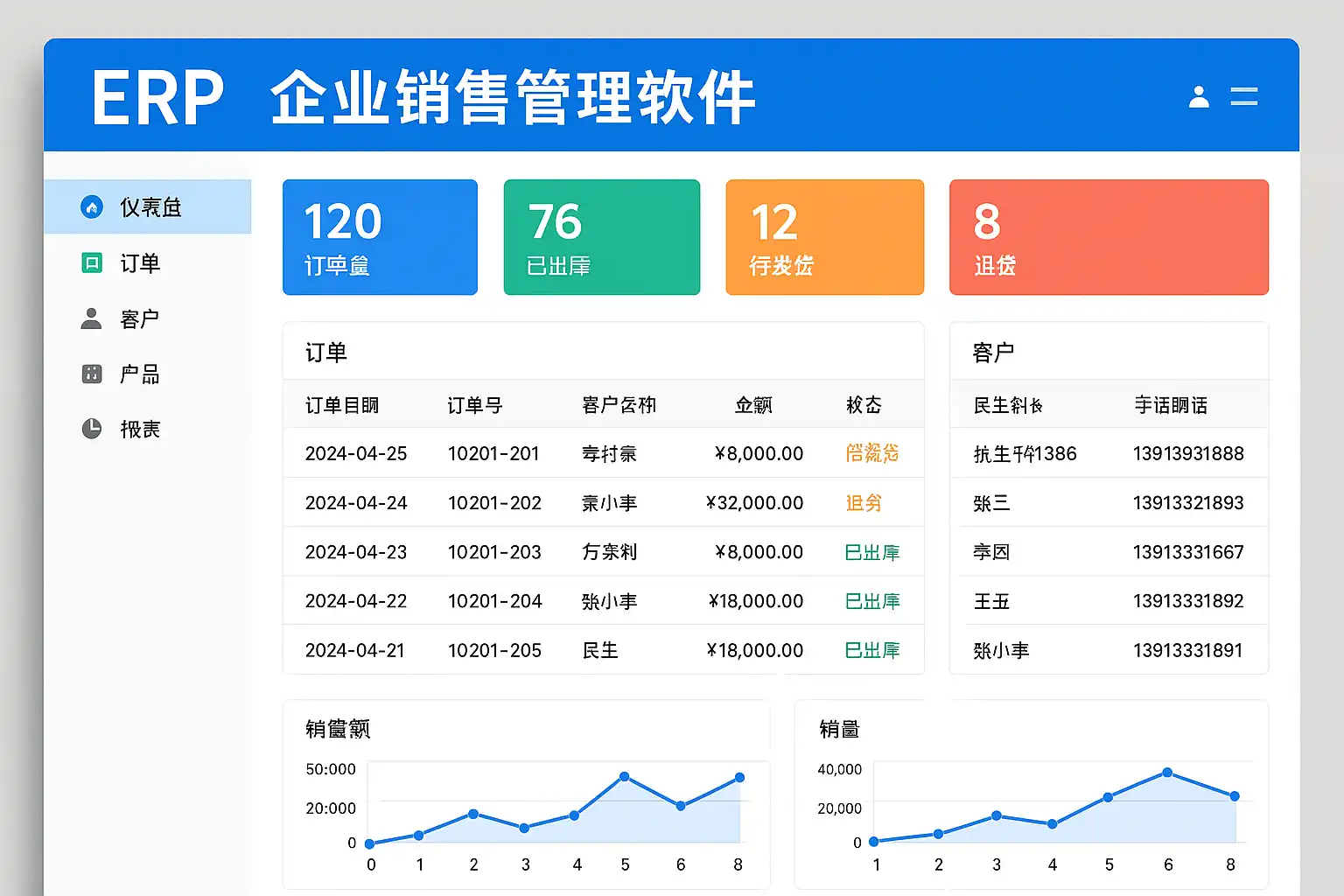 - 数据报表分析(销售业绩、客户贡献、订单转化率等)