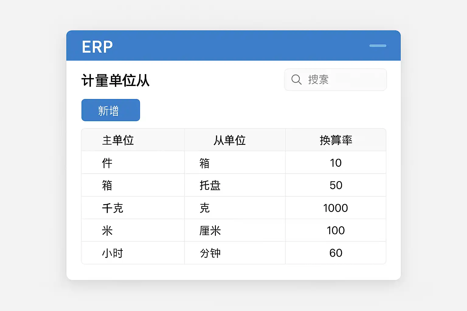 - 设置单位换算关系:在ERP系统中建立单位间的换算系数,支持自动换算与校验。