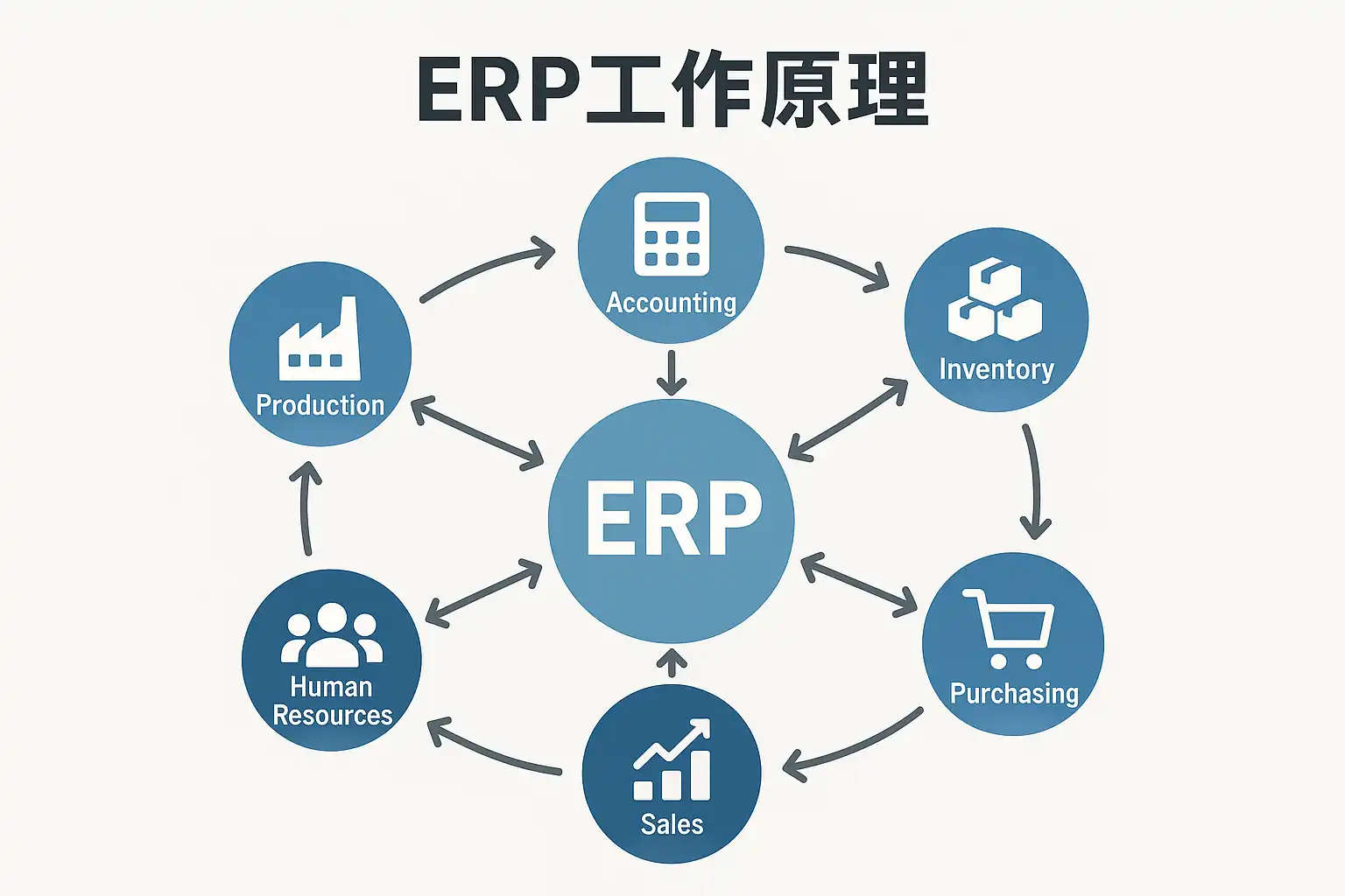 ERP系统通过集成企业的财务、供应链、生产、人力资源等模块,实现数据的实时共享和业务流程的自动化。其核心工作原理包括: