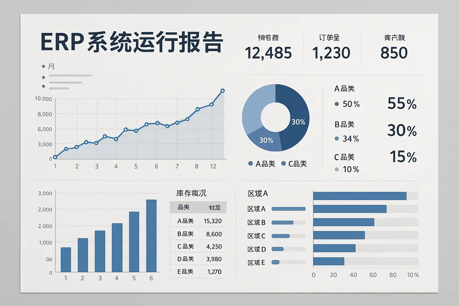 ERP系统运行报告提供实时、准确的数据支持决策,具体内容包括: