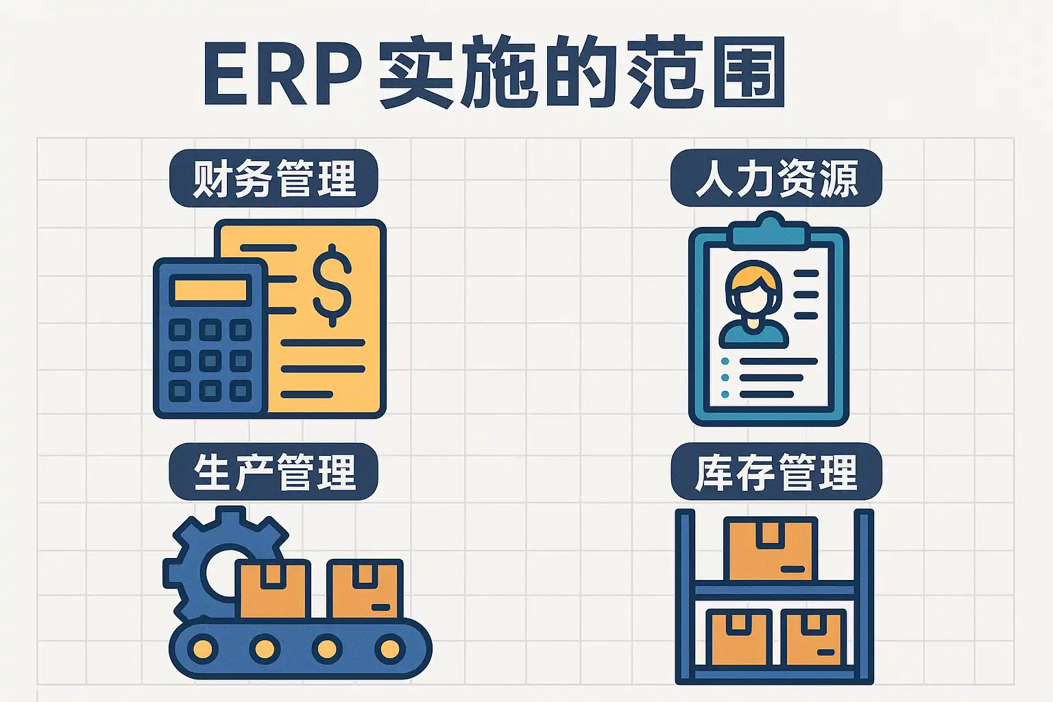 ERP实施范围涉及企业运营中的各大核心业务领域。具体包括: