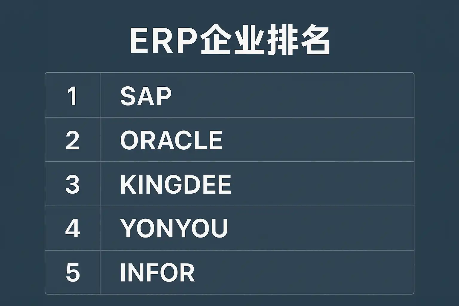 | 1 | SAP | 德国 | 全球领先,模块丰富 | 大型/跨国企业 |