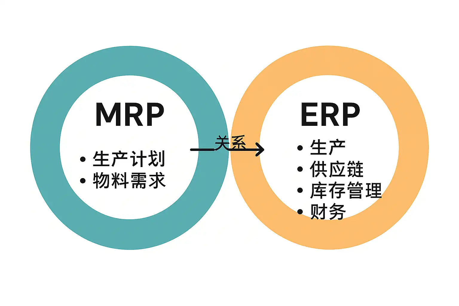 | 功能范围 | 物料需求与生产计划管理 | 企业全流程资源管理(含MRP、财务、HR、采购、销售等) | MRP是ERP的一个子模块 |