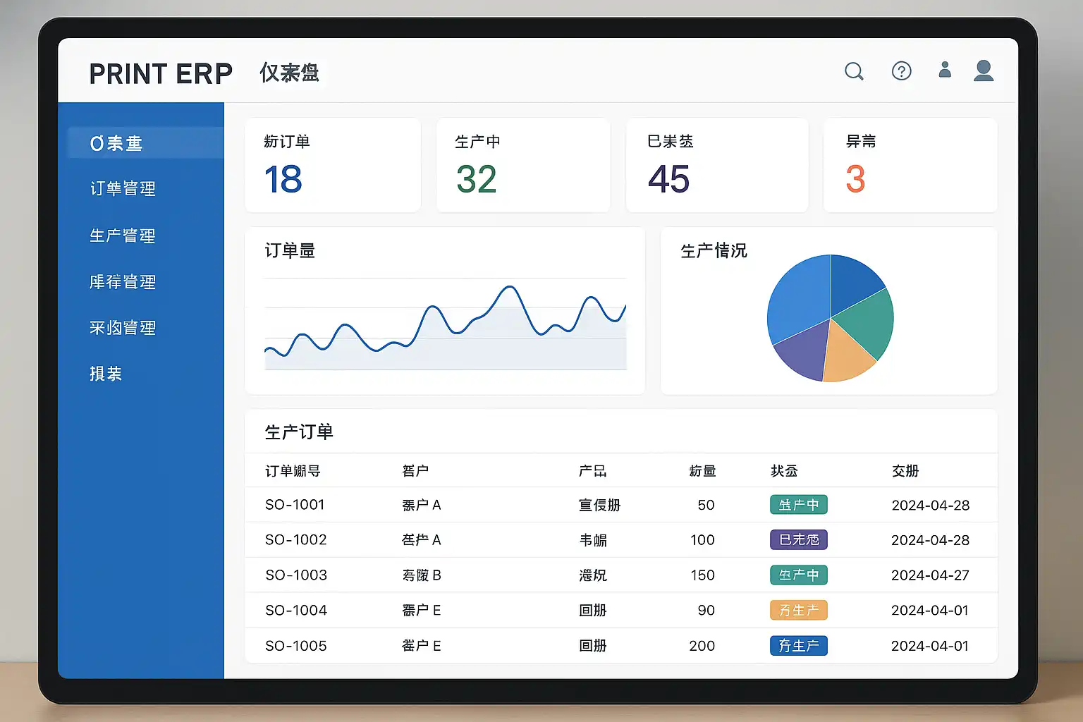 Q1:ERP系统如何帮助印刷企业降本增效? A:通过订单、采购、生产、库存、财务一体化管理,减少信息传递损耗、库存积压、生产误工,提升整体运营效率,实现降本增效。