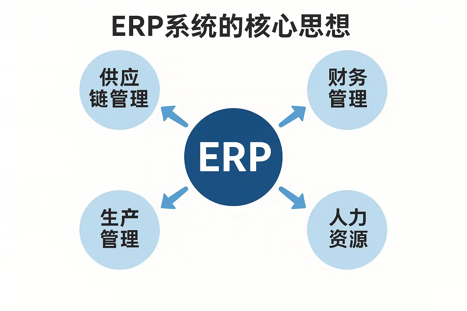 ERP系统的核心思想是实现企业资源的集成管理,促进信息流、物流、资金流的统一与协调。通过一个统一的平台,ERP系统整合企业内部各部门的数据和业务流程,提升效率和决策质量。其主要理念包括: