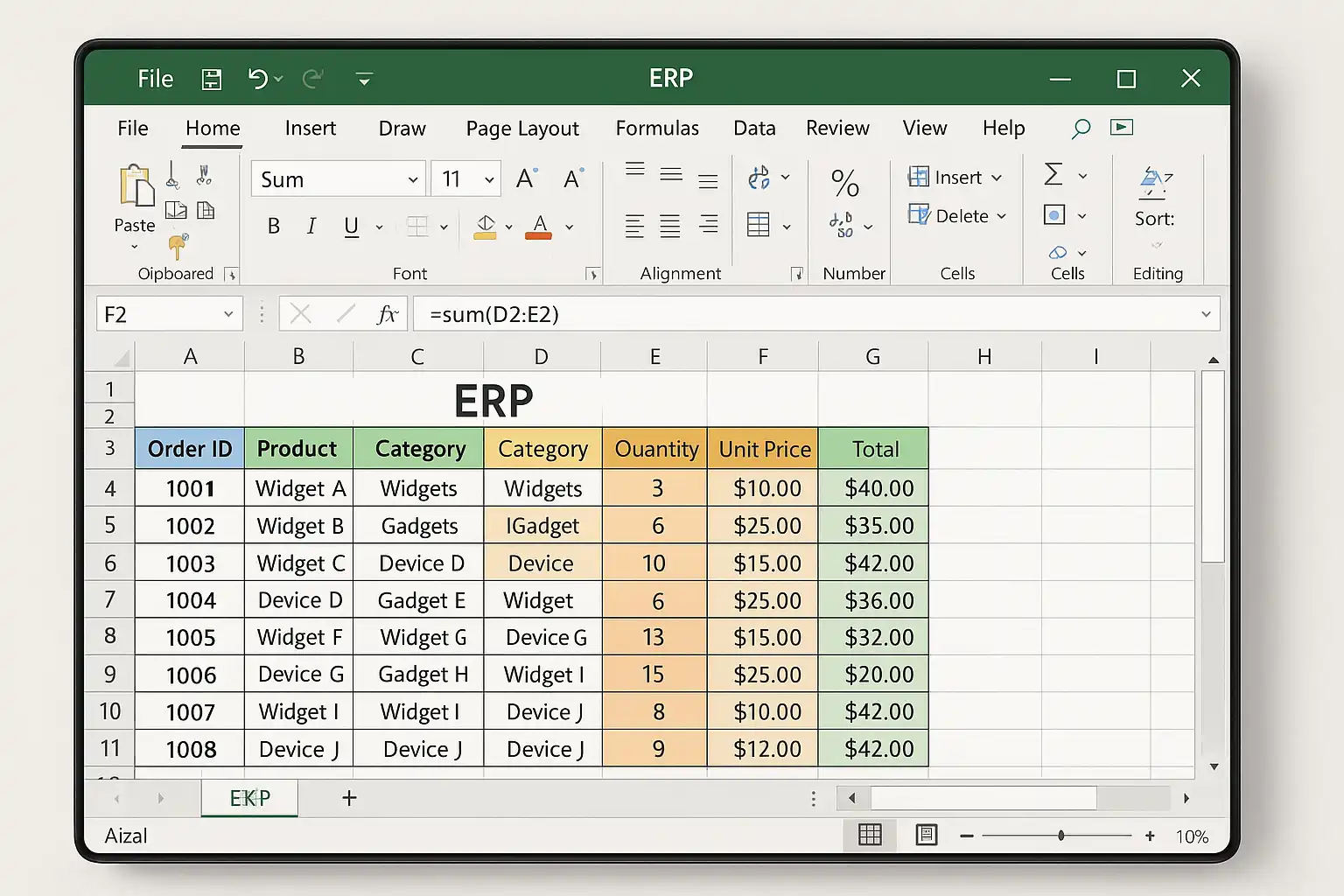 如何通过结构化布局提升Excel ERP系统的可读性和管理效率?