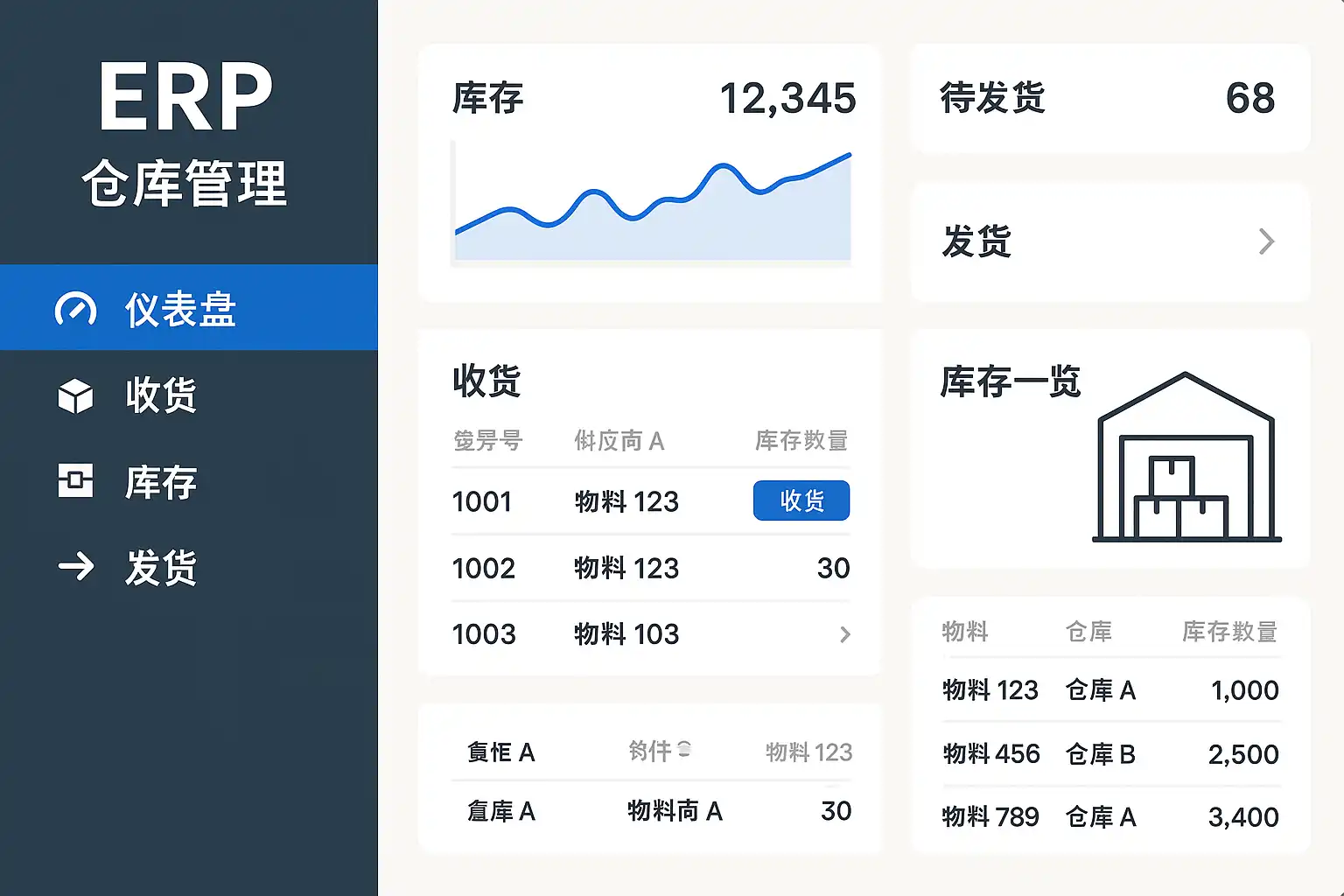 - 报表与数据分析:实时生成库存、订单等关键指标报表,辅助决策。 这些功能结合实际案例,如某电子产品企业通过实施ERP,库存周转率提升了40%,显著提升仓库操作效率。