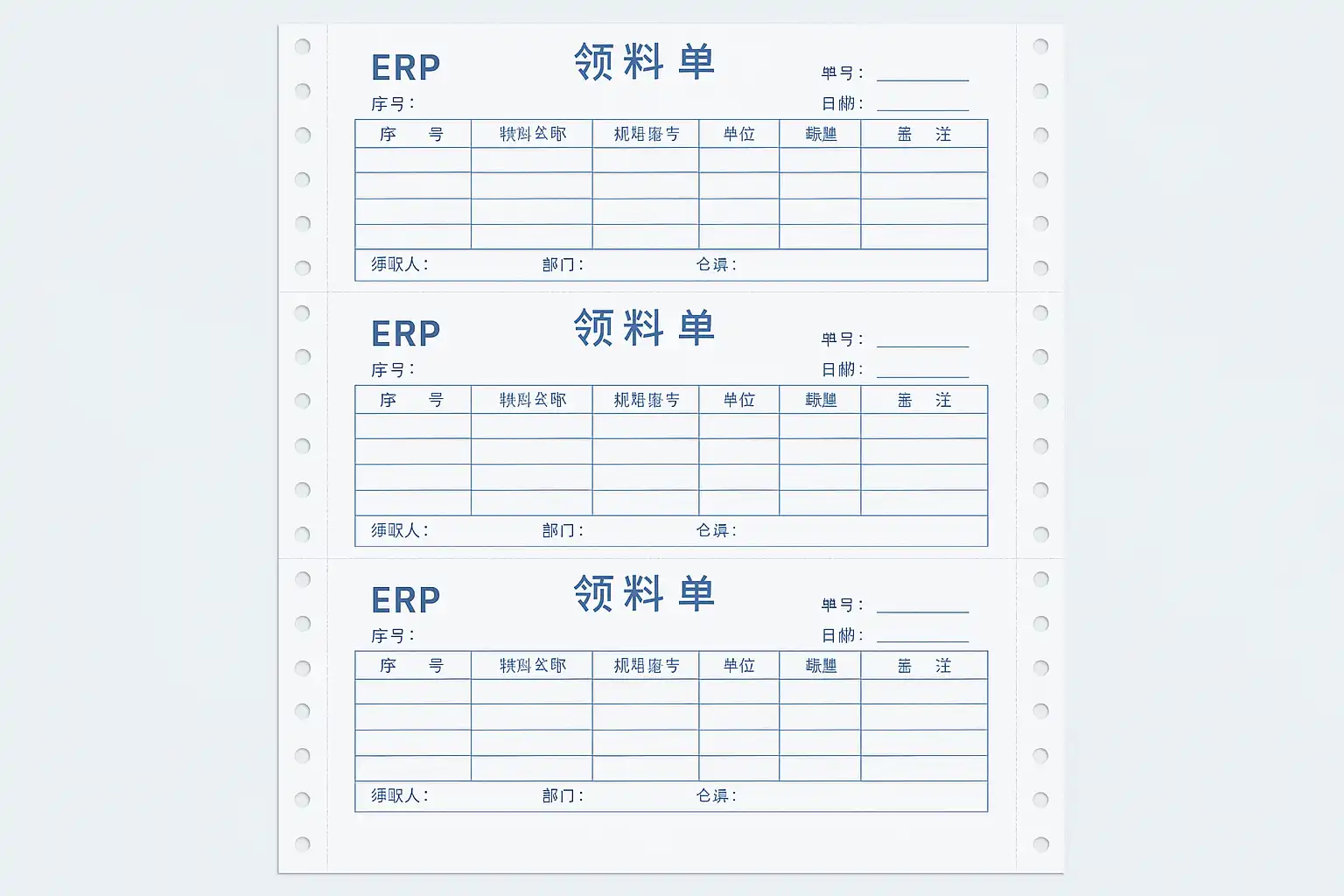 企业在实际应用中,常因模板设计不合理、打印效率低下、联次内容混乱等问题,导致流程延误和数据失真。因此优化四联领料单的制作与打印方式,是提升ERP系统应用价值的重要环节。