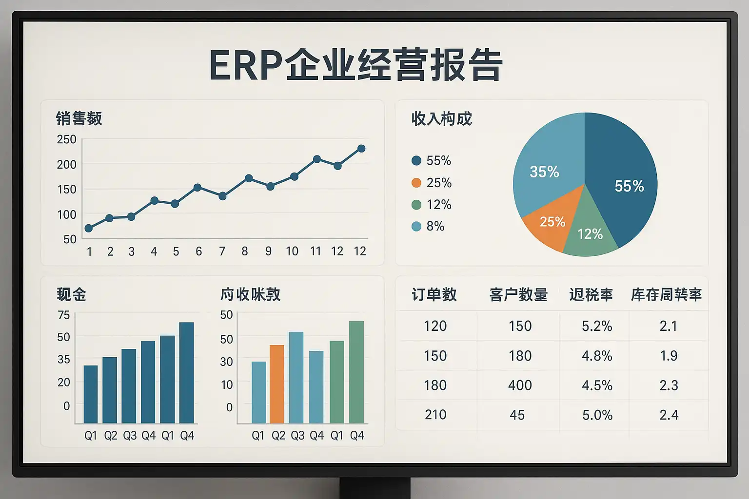 数据化表达增强说服力,结合ERP系统自动生成的报表,管理者可以精准监控并持续优化这些关键指标。