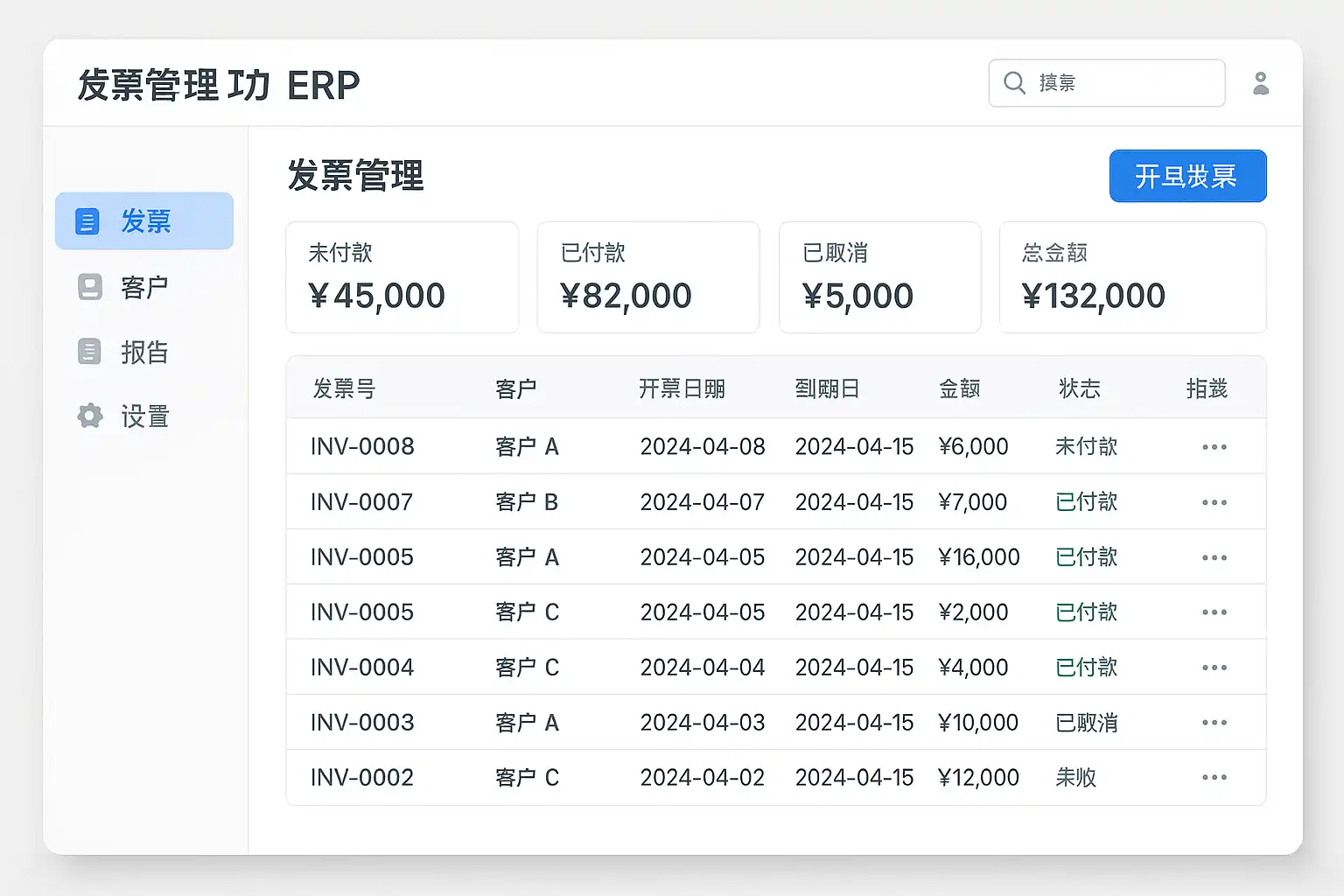 现代ERP系统如简道云ERP,采用自动化流程,将发票全生命周期管理纳入统一平台,实现发票收集、录入、校验、审批到归档等全过程智能化,大幅提升发票处理效率。
