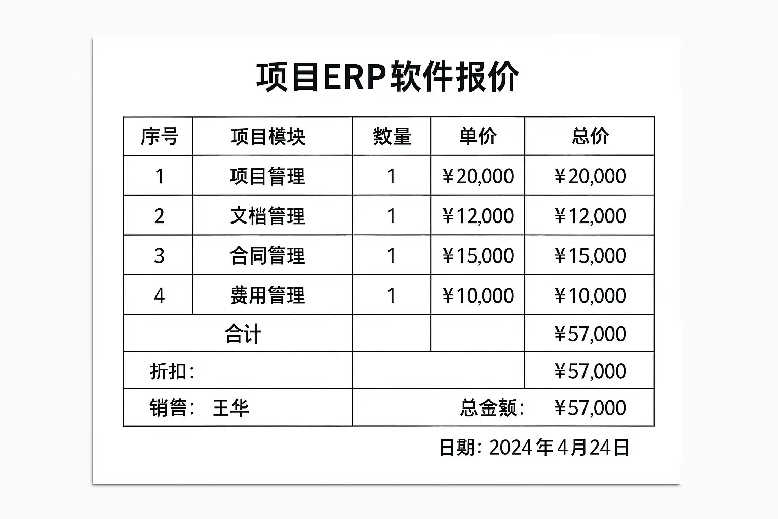 项目ERP软件报价通常包含以下主要费用: