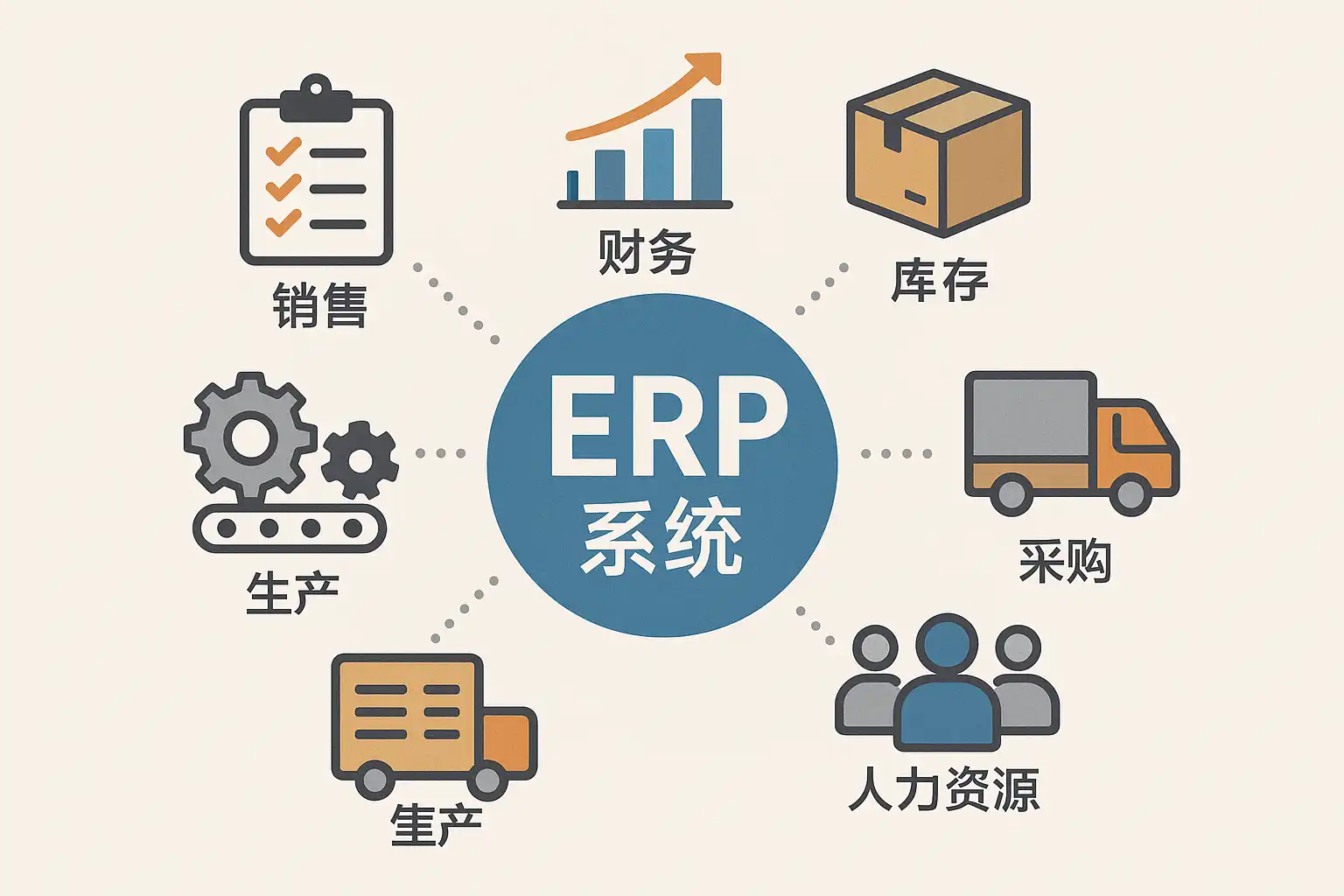 ERP系统通常涵盖以下主要功能模块,各模块既可独立运行,又能高度协同: