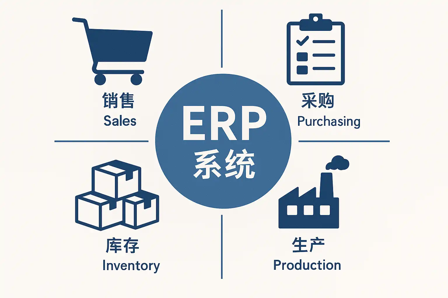 ERP(Enterprise Resource Planning,企业资源计划)系统是集成企业各项核心业务于一体的信息化管理平台。主要涵盖如下业务模块: