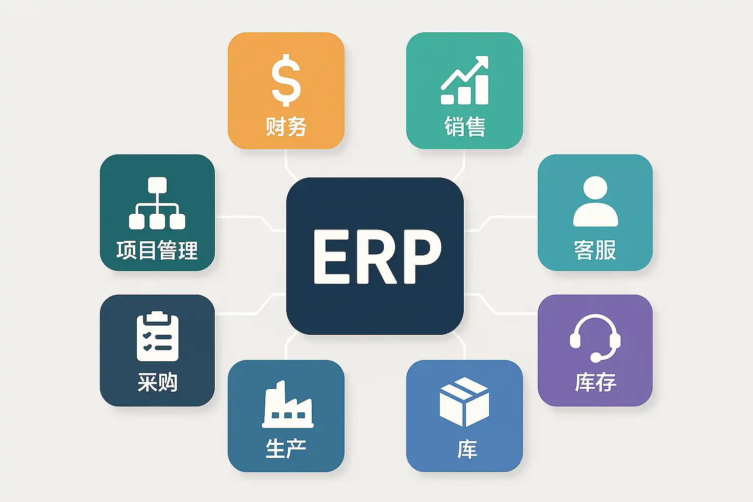 | 销售管理 | 客户管理、报价、销售订单、发货、回款、客户服务等 |