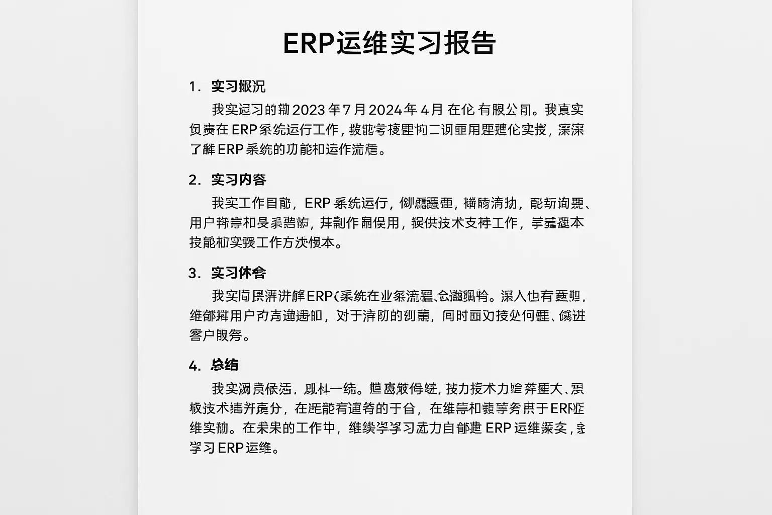 撰写ERP运维实习报告时,建议采用以下结构提升报告的专业性和可读性: