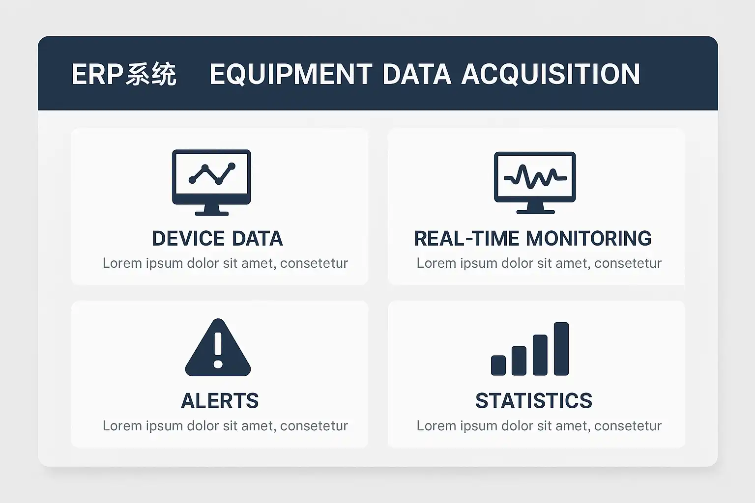 | 3. 数据传输 | 通过有线/无线网络、工业协议将数据实时推送到ERP数据中心 |