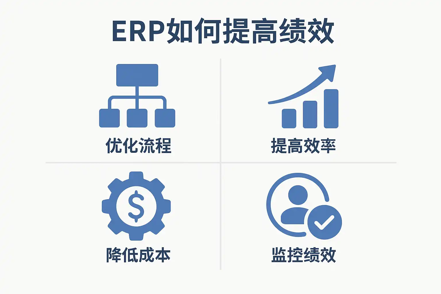 ERP系统通过集成企业各业务流程,实现数据实时共享和自动化管理,具体提升绩效的方式包括: