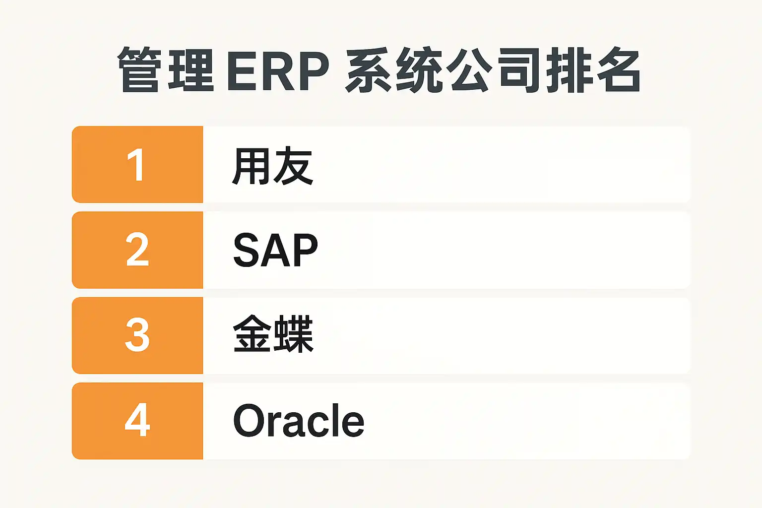| 2 | 用友网络 | 用友U8/U9 | 大中型企业 | 行业内深耕、功能完备、本土化支持强 |