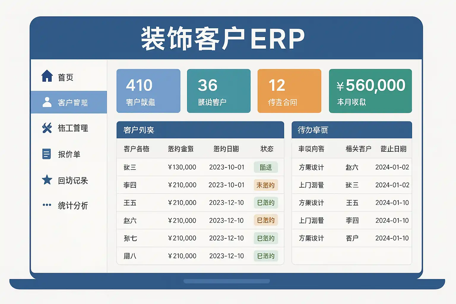 背景延伸: 装饰行业项目周期长、环节多、涉及客户定制化需求,传统管理方式难以满足精细化运营和客户高质量服务的要求。ERP系统通过信息化手段,帮助企业实现从客户开发、合同签订、设计施工到售后服务的全流程闭环管理,提升了企业的市场反应速度和服务体验。