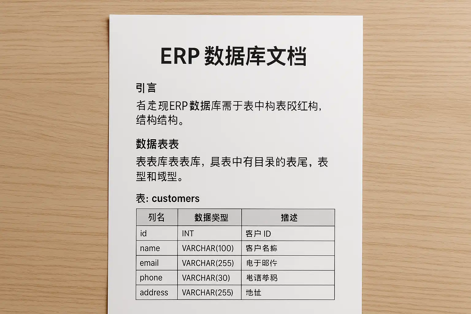 ERP(Enterprise Resource Planning,企业资源计划)数据库文档,是指对企业ERP系统中所有数据表、字段、关系、索引、存储过程等数据库对象进行详细、结构化记录和说明的文档集合。其核心作用包括: