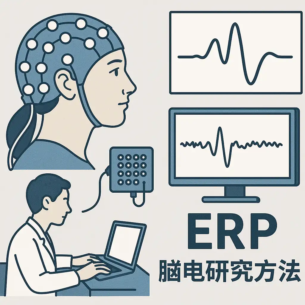ERP脑电研究是基于EEG(脑电图)的时间锁定电位分析方法,通过对特定事件(如刺激呈现、任务反应)前后脑电信号的平均处理,提取出与认知过程紧密相关的电生理指征。其基本流程包括实验设计、数据采集、预处理、特征提取与统计分析。