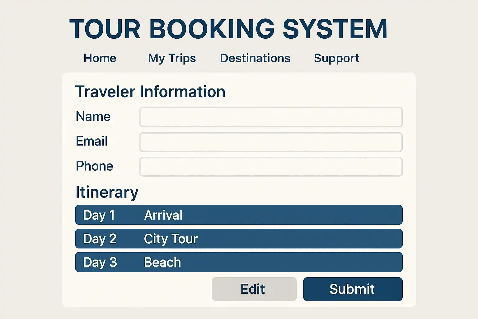 - 客户确认与调整:客户可在线查看、修改行程方案,系统实时更新。