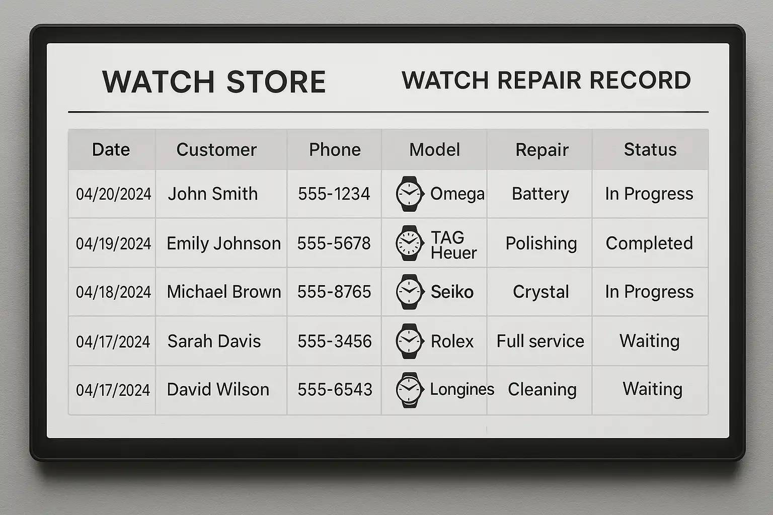 - 某连锁手表维修门店,原本采用手工纸质记录,常出现订单遗漏、客户投诉等问题。