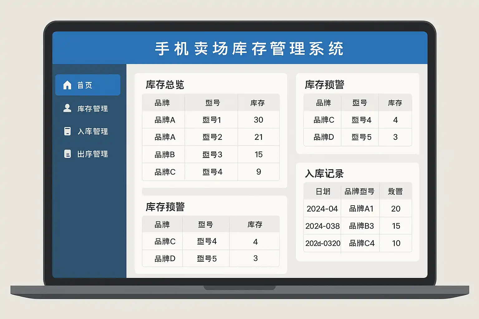摘要 手机卖场在激烈的市场竞争中,要实现利润最大化,需重点关注:1、采用数字化库存管理系统提升效率;2、精确库存盘点降低积压与损耗;3、数据驱动的采购与销售决策;4、自动化预警机制防止断货与过度采购;5、灵活的商品分类与追踪管理。其中,数字化库存管理系统极为关键。通过引入如简道云业务管理系统,手机卖场能实现库存实时更新、快速盘点、智能补货和多维度数据分析,有效减少人工错误及成本浪费。例如,系统可自动根据销量趋势生成采购建议,令库存结构更科学,有效规避滞销风险,从而提升资金利用率,提高整体利润空间。