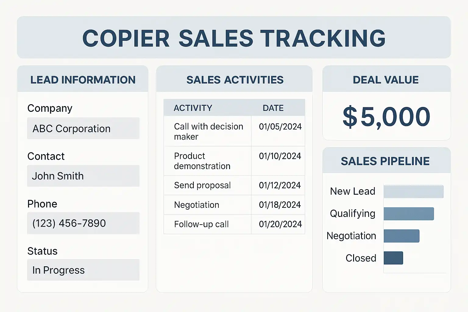 例如,某复印机销售公司通过使用销售跟踪系统,将销售周期缩短了25%,订单处理时间减少了40%。