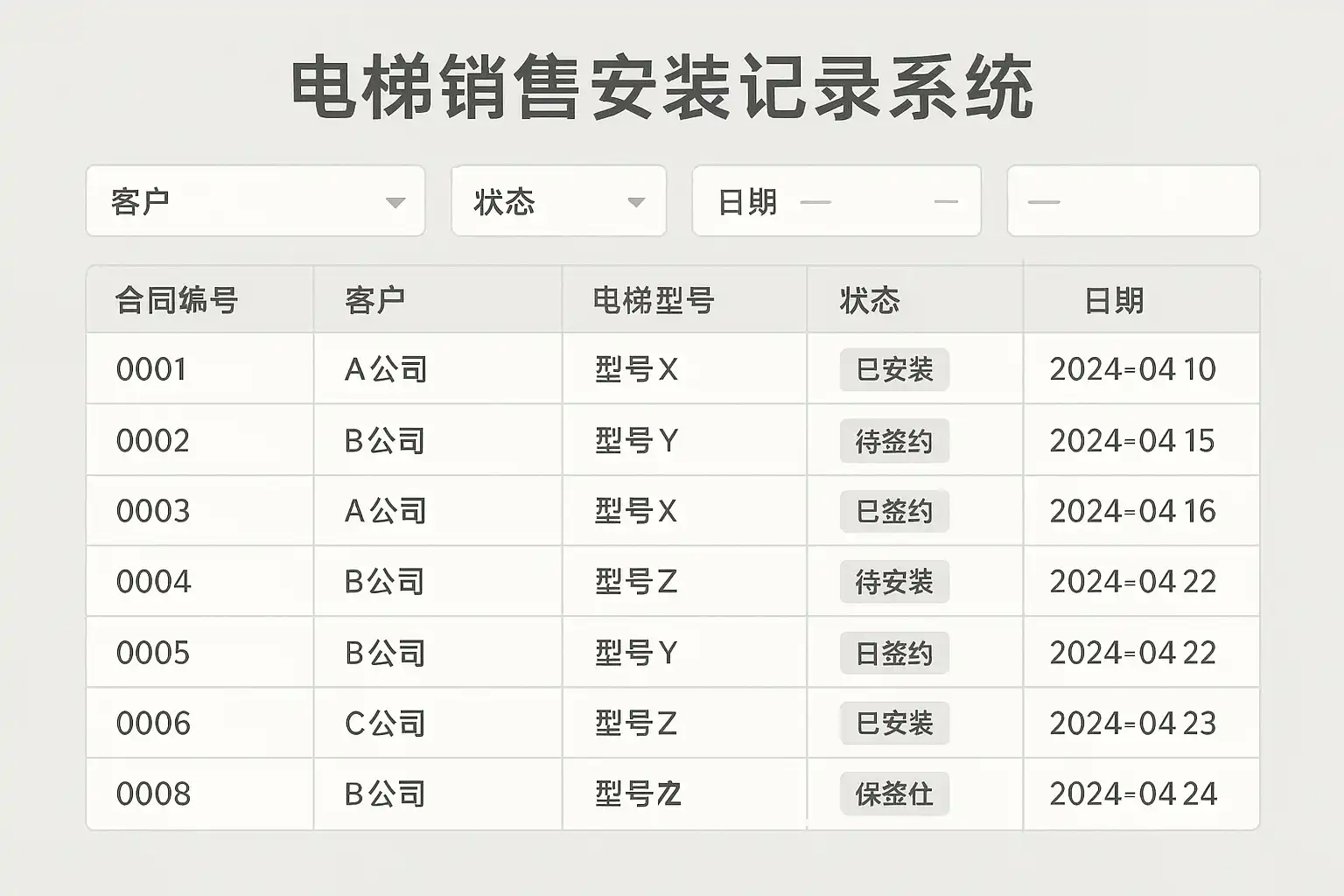 传统电梯销售安装管理中,数据分散在不同表格、系统或纸质档案中,容易导致信息遗失、重复录入、协作不畅。通过数据集中管理,可实现: